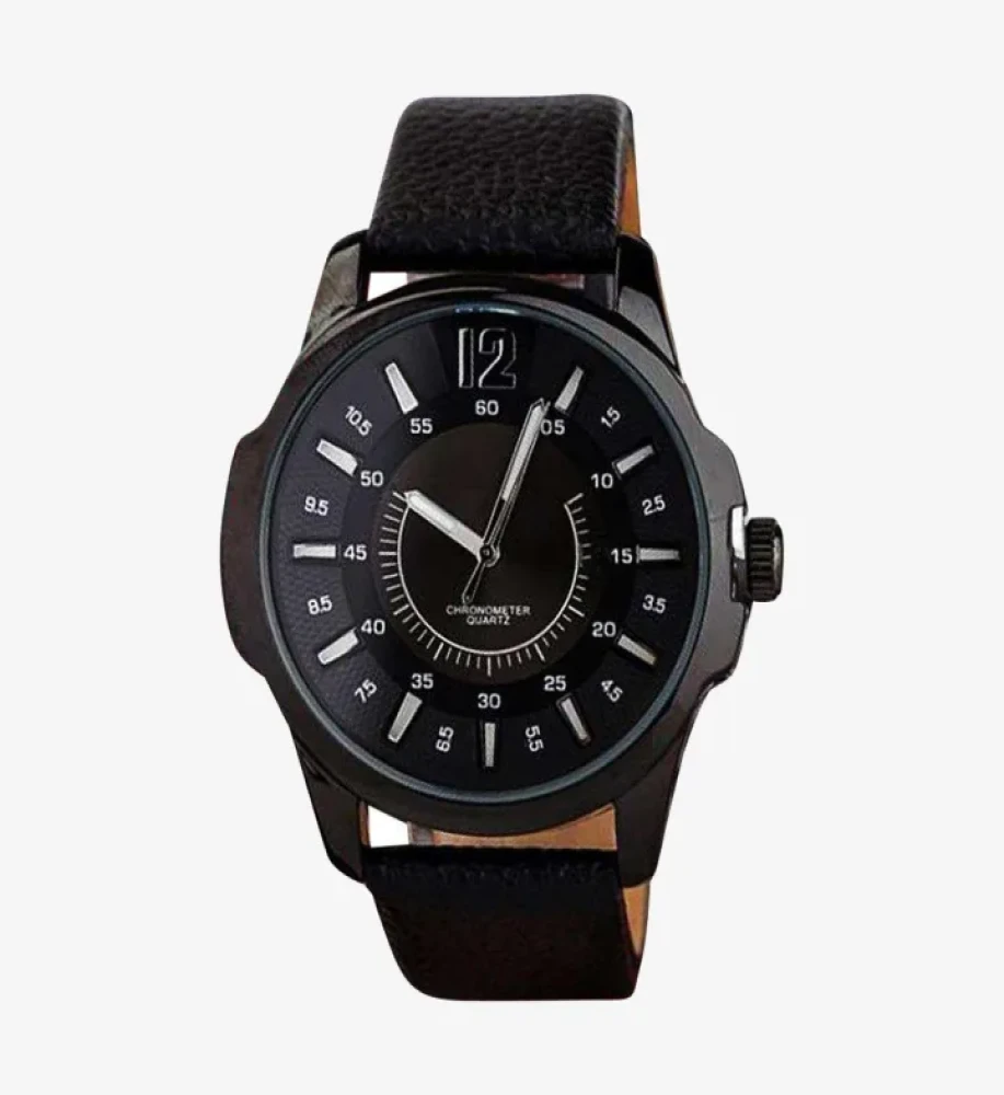 W643 Leather Analog Watch For Men Round Shape - Black and Silver
